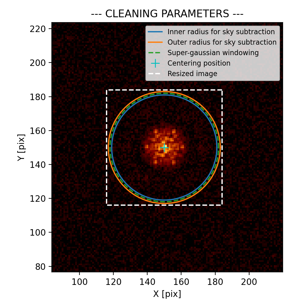 If the cleaning parameters seem well located (cyan cross on the centre, sky radius outside the fringes pattern, etc.), we can apply the cleaning step to the data.