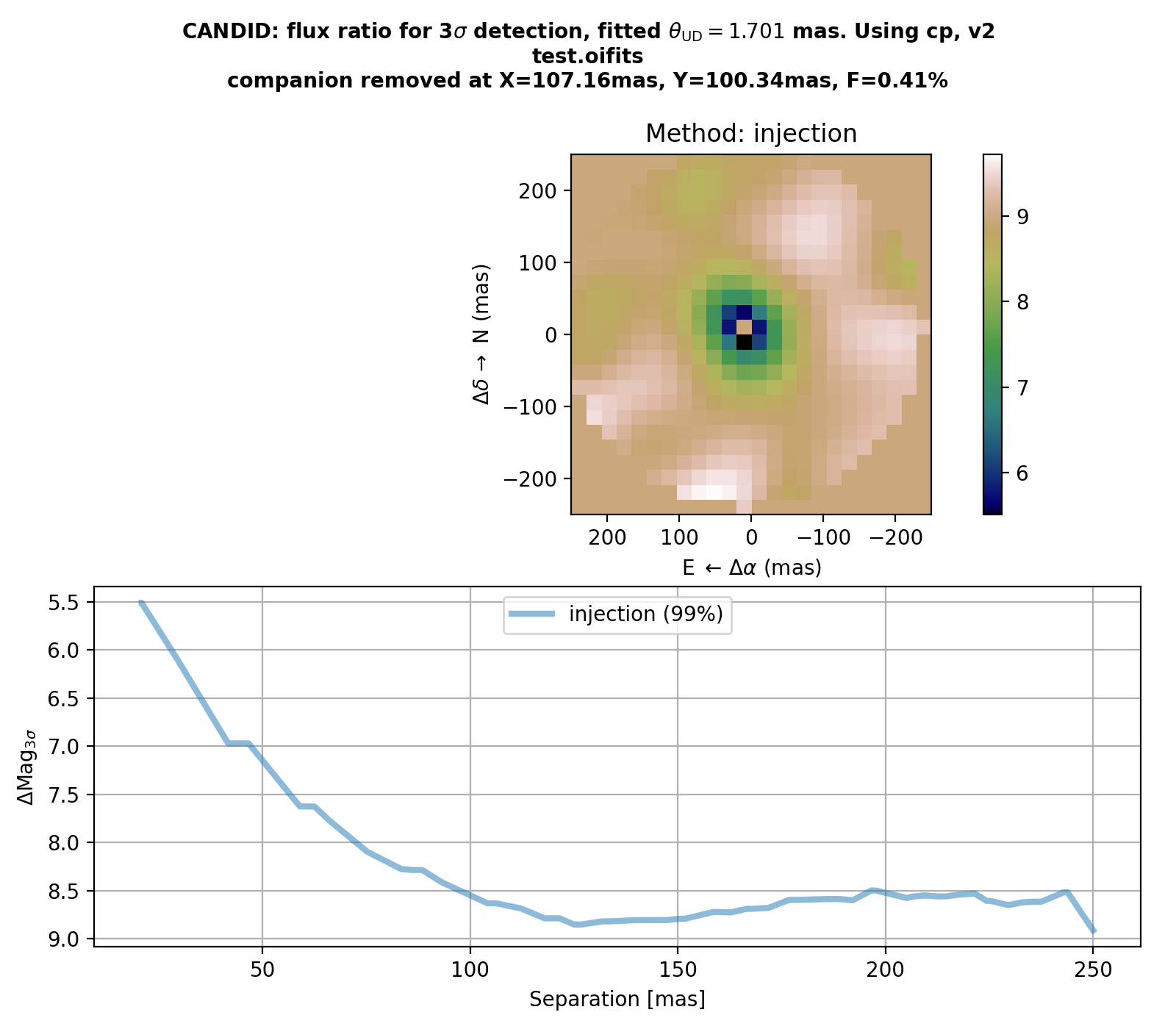 cr_candid = amical.candid_cr_limit(inputdata, **param_candid, fitComp=fit1["comp"])