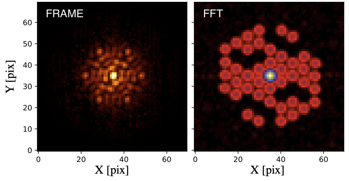 FIG. 3* - Example of NIRISS data. Left: Image plane representing the fringe pattern. Right:* Fourier transform (Fourier plane).